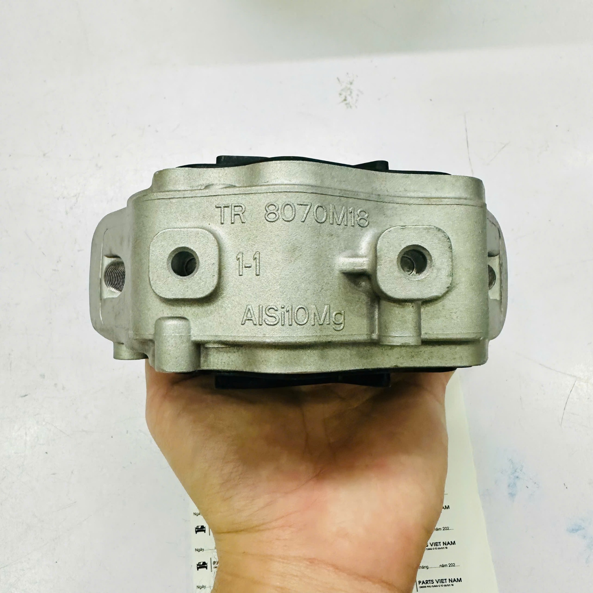 ⚠️ Kiểm tra đồng bộ: Khi giằng chống lật sau hỏng, 2 chân máy thủy lực (trái/phải) và chân hộp số cũng bị quá tải. Khuyến nghị kiểm tra toàn bộ hệ thống chân đỡ động cơ để thay thế đồng bộ.