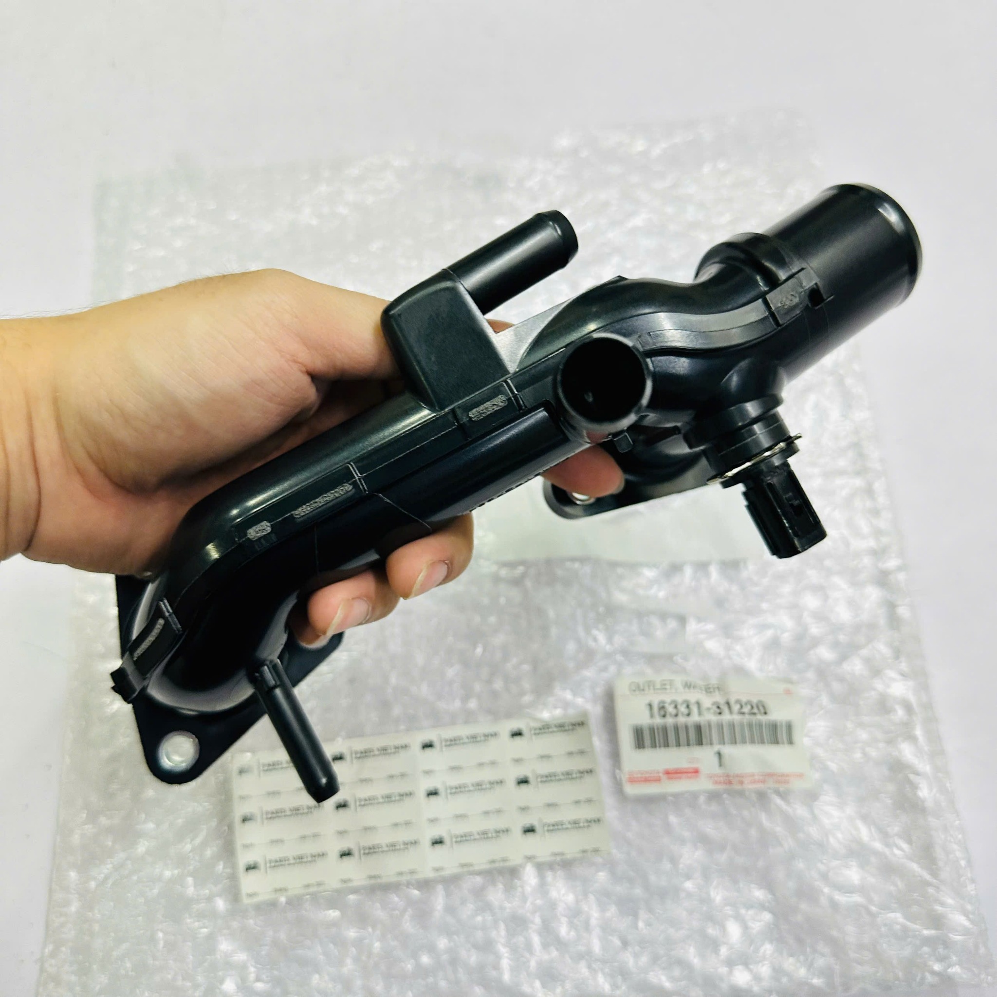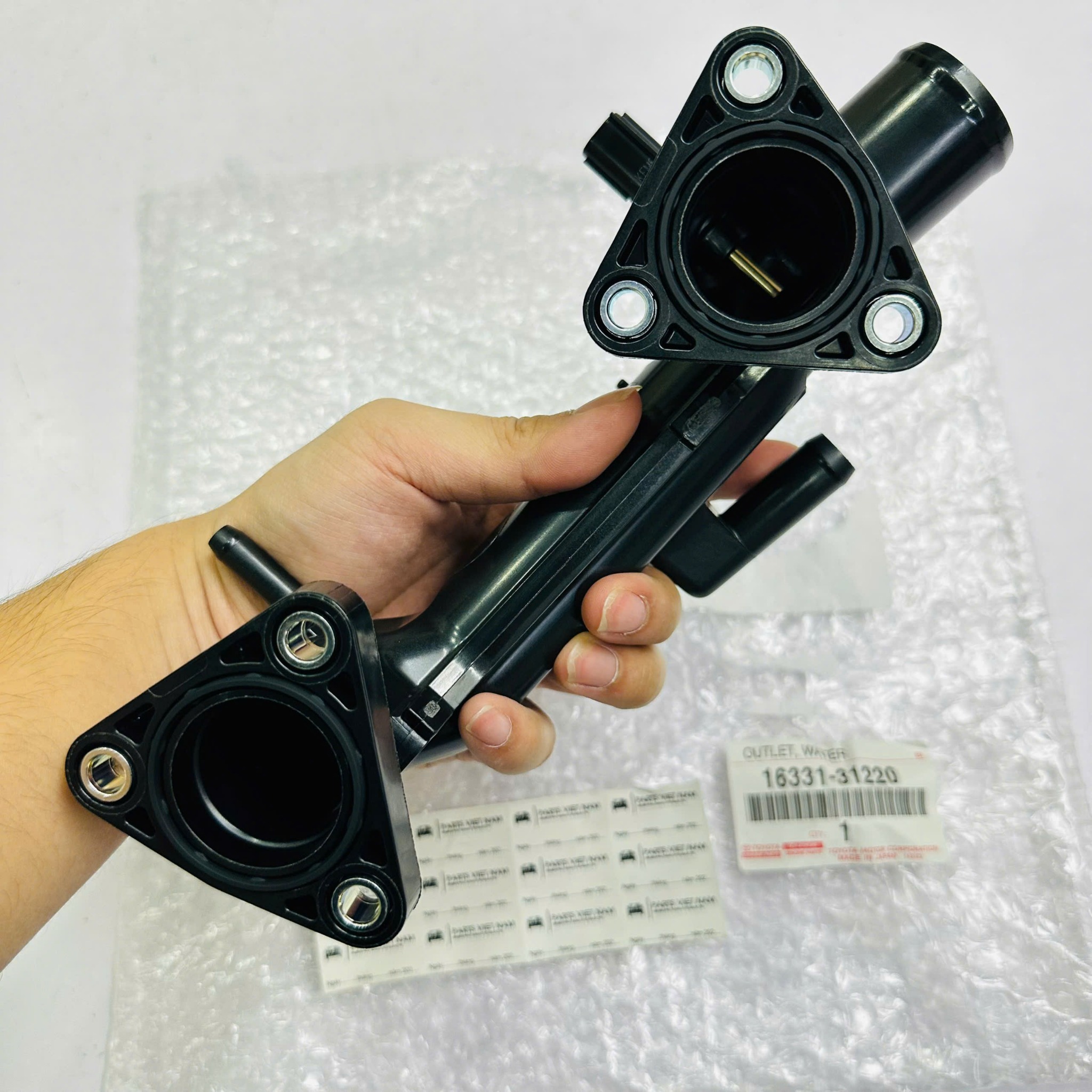 Sản phẩm mã **16331-31220** là hàng **Xịn Toyota**, được đúc bằng hợp kim cao cấp chịu nhiệt và chịu áp suất cực cao. Linh kiện này đảm bảo dòng nước làm mát lưu thông ổn định từ động cơ ra két nước, bảo vệ tối đa cho chiếc SUV/Bán tải của bạn.