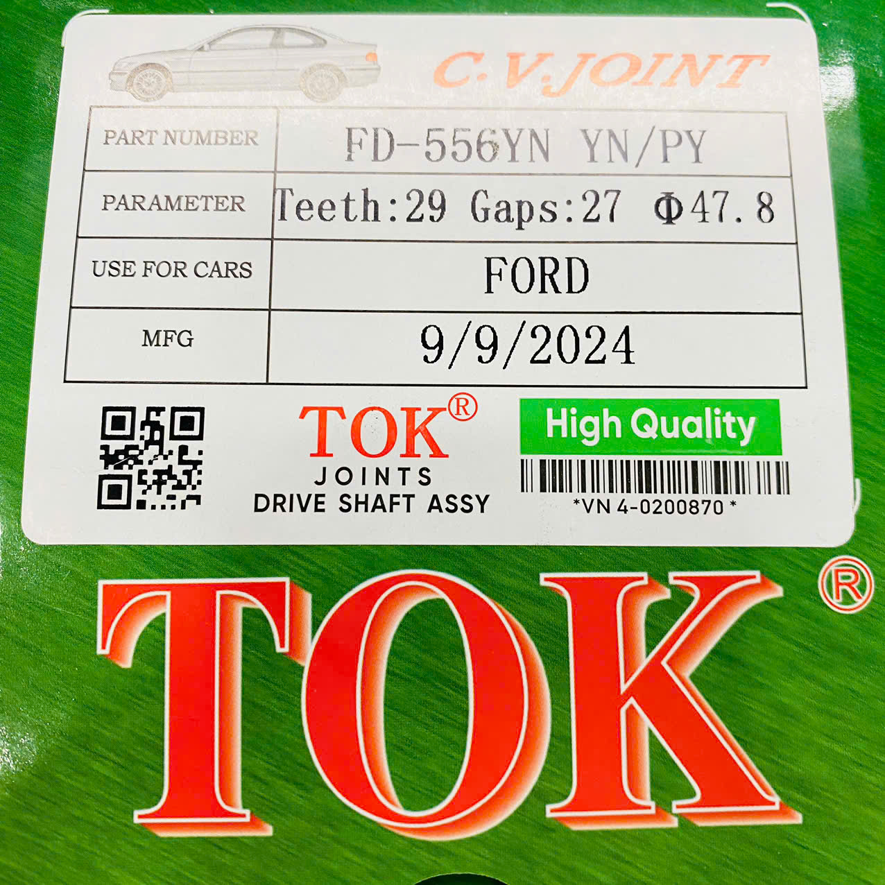 Đầu láp trong dành cho Ford Ranger 3.2 và Mazda BT50 3.2 số tự động đời 2015 - 2019. Sản phẩm được sản xuất bởi Tok Japan, mang đến độ bền vượt trội và hiệu suất ổn định cho xe của bạn.