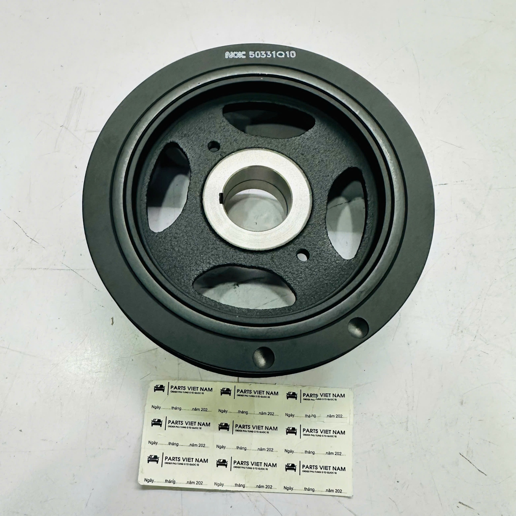Hàng chính hãng có công nghệ cao su giảm chấn (Harmonic Balancer) chuẩn xác giúp bảo vệ trục cơ. Hàng thường đa số là đúc gang nguyên khối hoặc cao su kém chất lượng, chỉ quay được dây curoa chứ không có tác dụng giảm chấn, lâu ngày gây hại máy.
